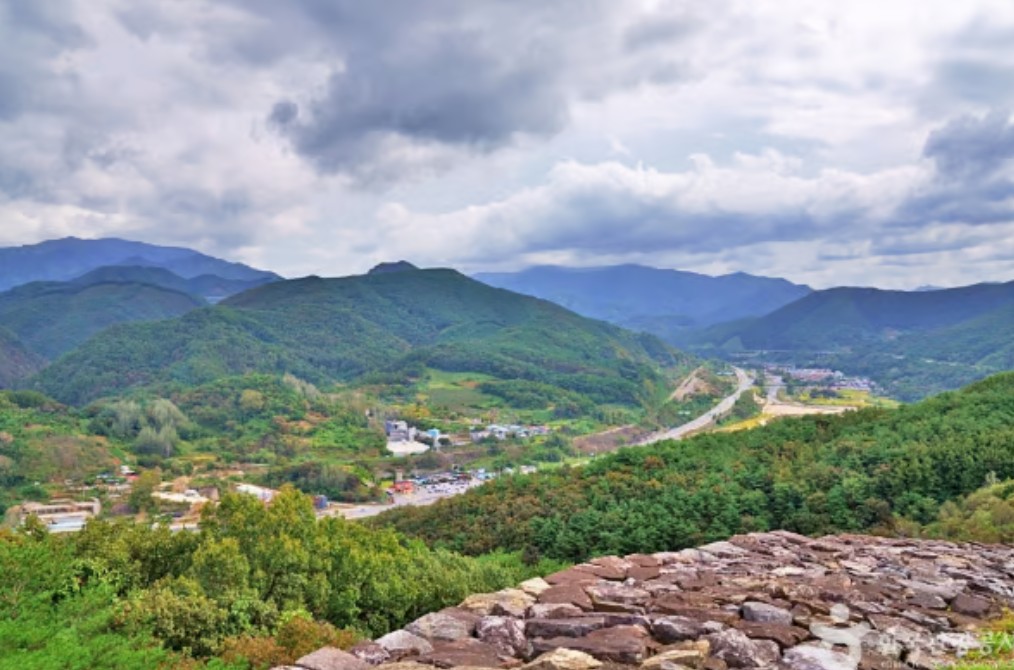 단양 적성비 앞에서 밑을 내려다보면 끝없이 펼쳐진 산세 뷰를 감상할 수 있어요.