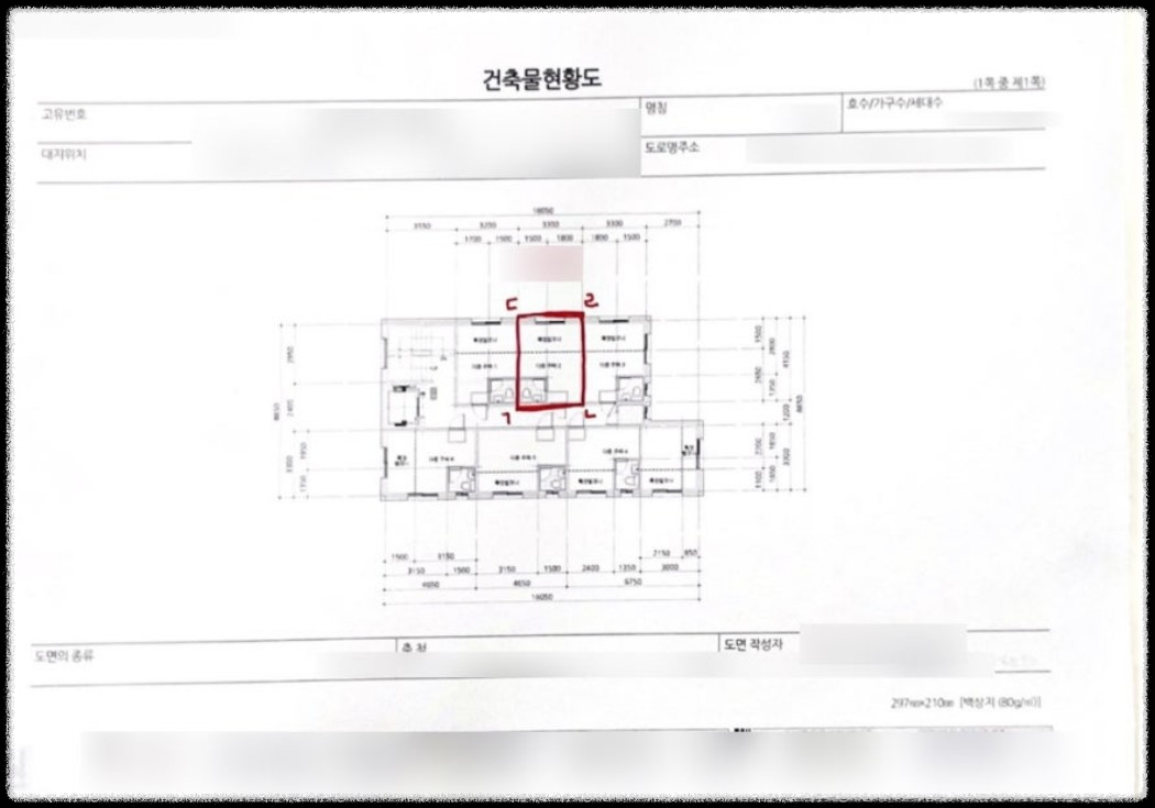 * 건축 단면에 임차한 부분을 표시하여 사각형 꼭짓점에 ㄱ, ㄴ, ㄷ, ㄹ 등을 기입한 후 "각 점을 순차로 연결한 부분"을 작성해요.